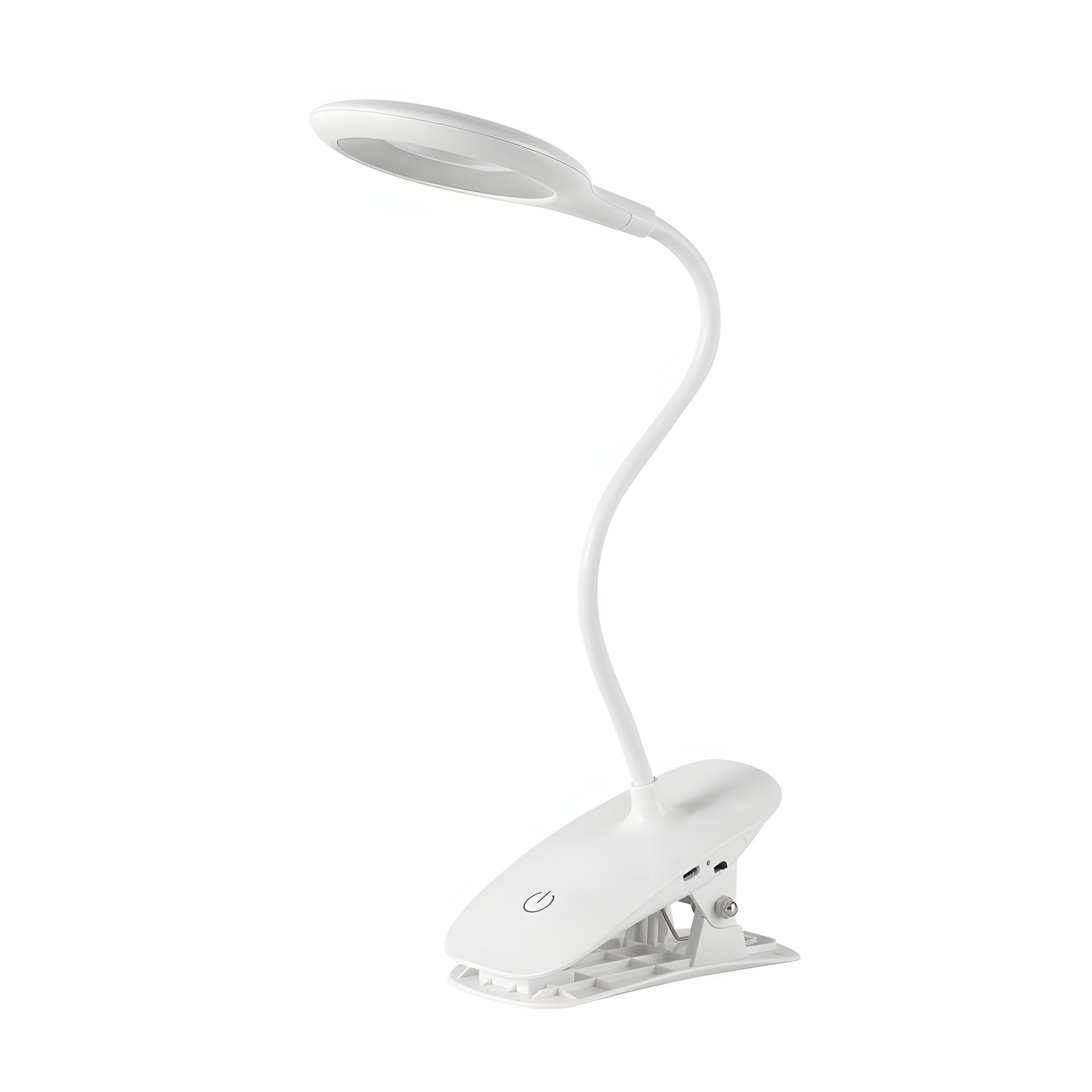 Лампа настольная WS-702S - это универсальное устройство, которое отлично подойдёт для освещения спальни, гостиной, рабочего стола дома или в офисе. Аксессуар реализован в стильном дизайне, позволяющем ему лаконично вписаться в любой интерьер и стать его неотъемлемой функциональной деталью. Для его изготовления используются качественные электронные компоненты, ABS пластик и металл, что гарантирует долговечность и сохранность привлекательного внешнего вида. Благодаря практичному основанию, выполненному в виде прищепки на подошве которой находятся противоскользящие накладки и небольшой вырез, устройство можно устанавливать на горизонтальной поверхности, крепить на стене или на краю полки, стола или изголовья кровати с шириной до 7см. Кольцевой осветительный элемент лампы удерживается гибкой ножкой, может светить с разной яркостью и температурой 3000, 4500 и 6000К. Для настройки освещения имеется сенсорная панель, а для подключения лампы к сети и зарядки встроенной батареи емкостью 1200mAh - разъем Micro-USB.