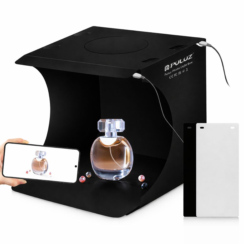 - Формат 20 × 20 × 20 см оптимален для съёмки небольших предметов, не занимая много места на рабочем столе.