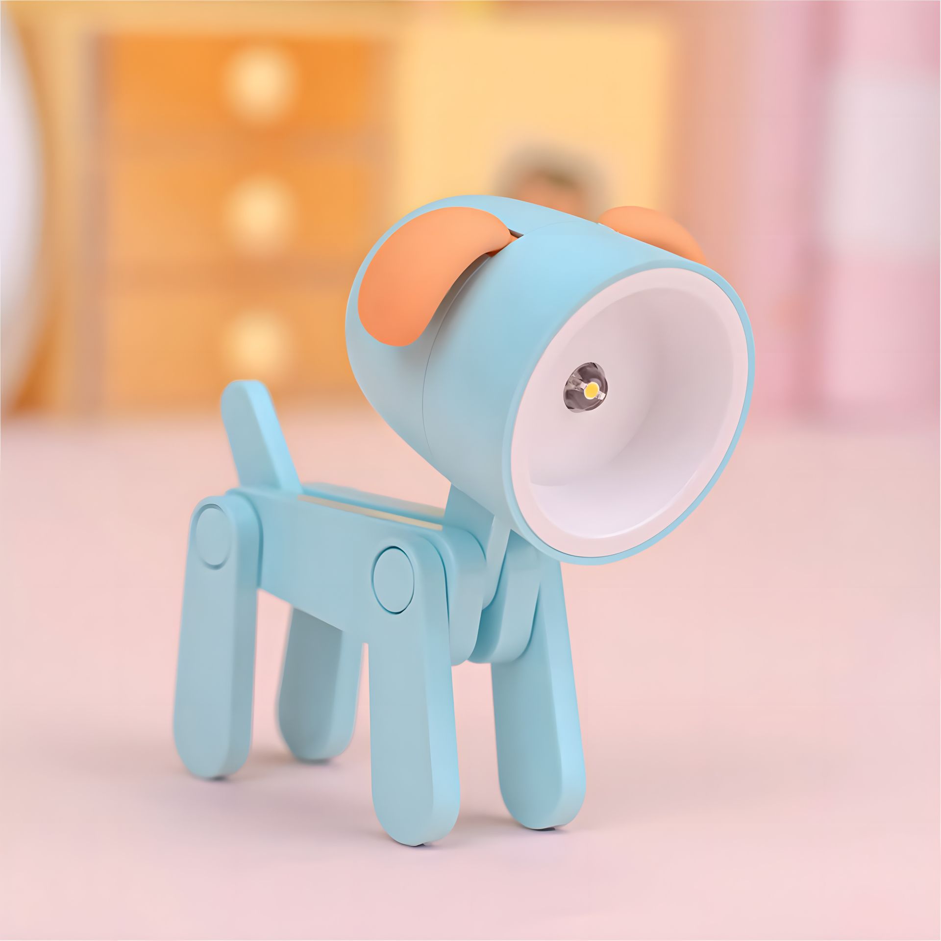 Портативный складной мини-светильник "Собака" голубого цвета на батарейках