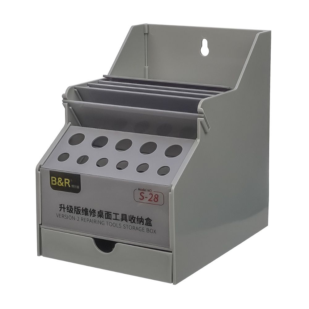Настольный органайзер для инструментов B&R S-28 представляет собой компактное и функциональное решение для поддержания порядка на рабочем месте, предназначенное для хранения мелких инструментов, аксессуаров и деталей.