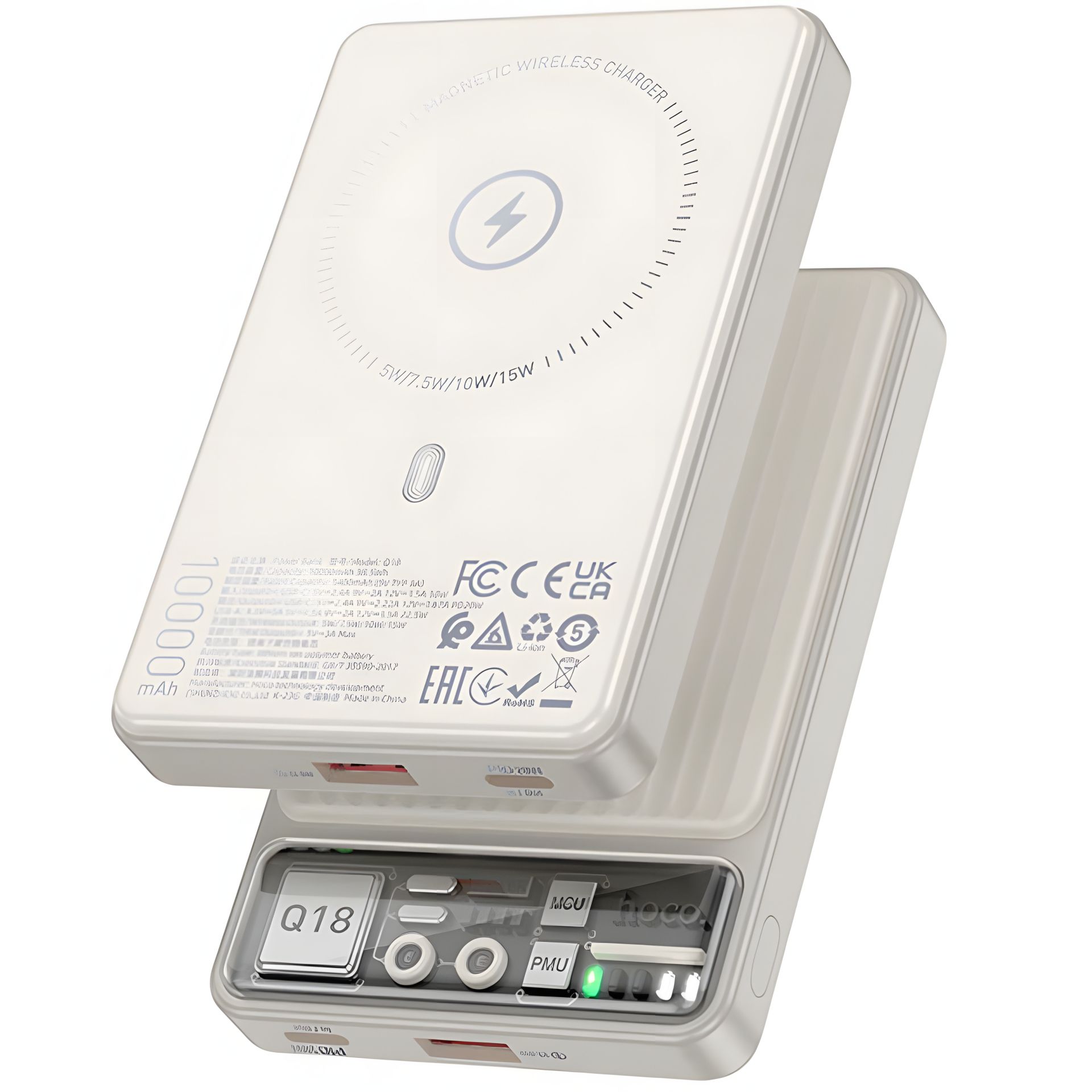 Повербанк HOCO Q18 Tourer 22.5W полностью совместимый power bank с magnetic fast charging (10000mAh), молочно-белый