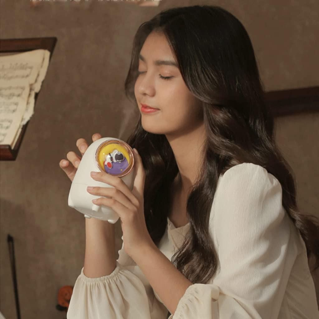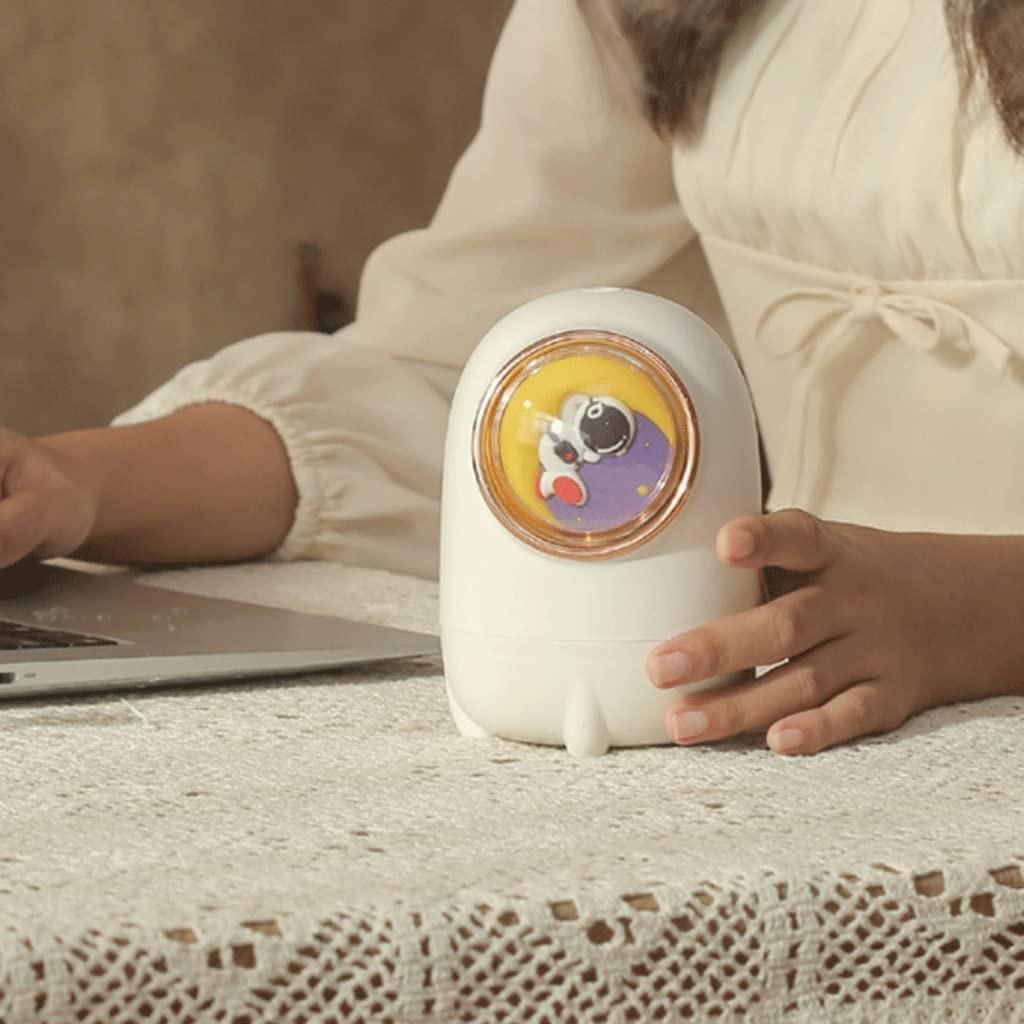 - Форма космической капсулы с иллюминатором и миниатюрным астронавтом внутри делает увлажнитель стильным украшением для спальни, детской комнаты или офиса.