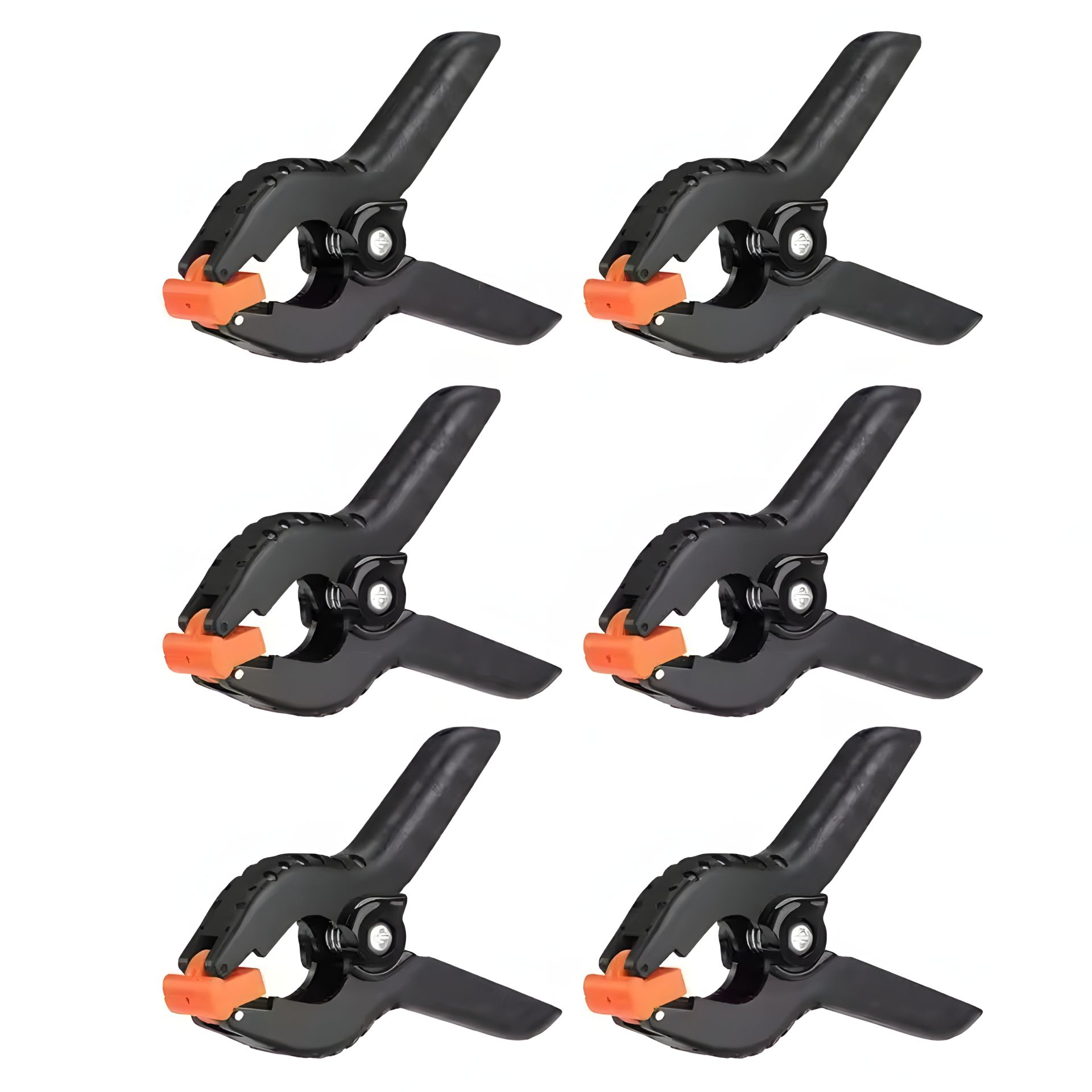 Комплект из 6 пластиковых пружинных зажимов (струбцин) | 9.5x7 см, раскрытие до 3 см | Black-Orange