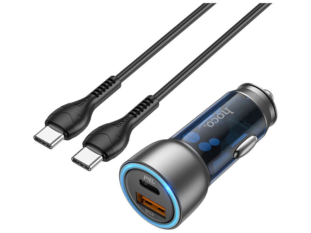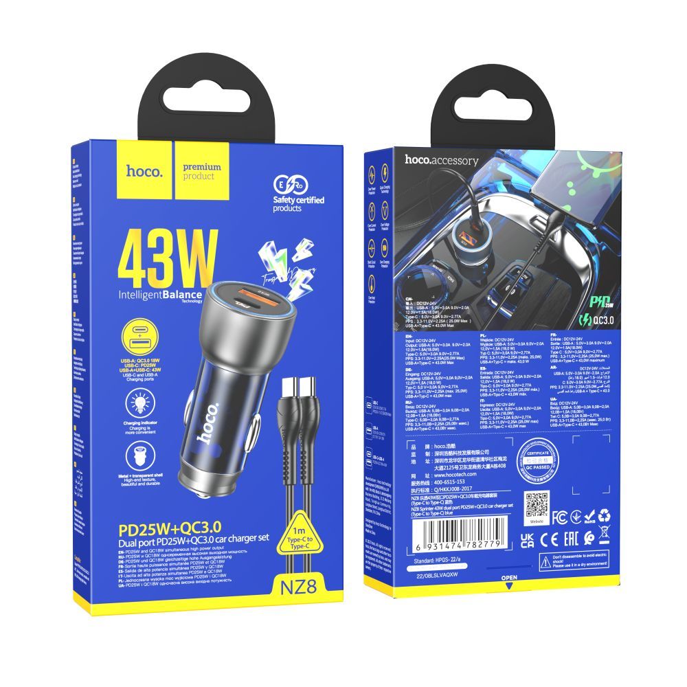 Автомобільний зарядний пристрій Hoco NZ8 Sprinter, 43W, PD25W, QC3.0, кабель Type-C to Type-C, Синій