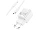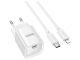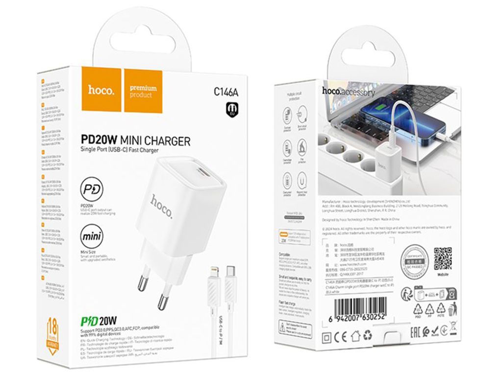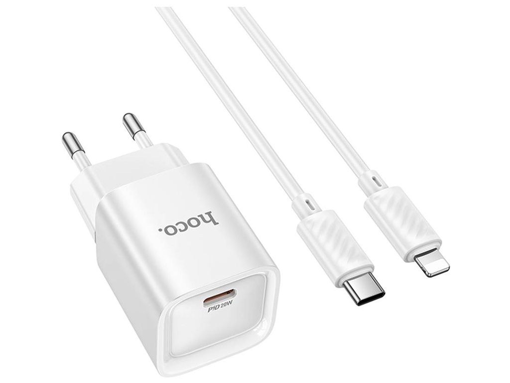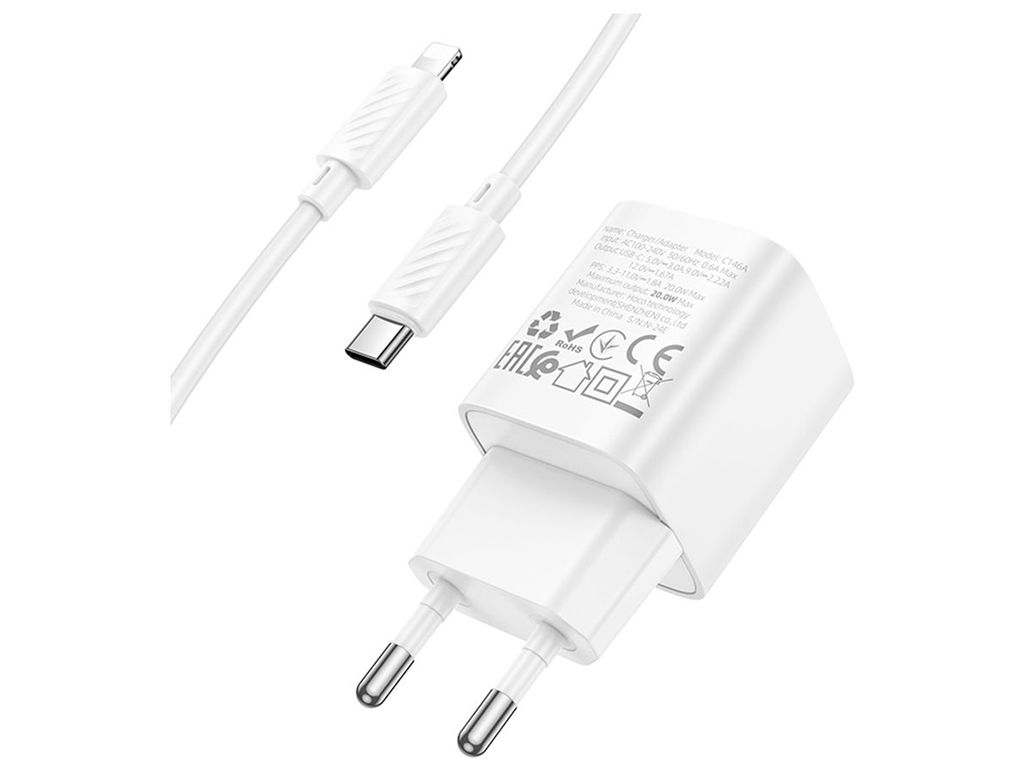 Зарядний пристрій мережевий Hoco C146A, 1Type-C, PD, QC 20W, кабель Type-C to Lightning, Білий