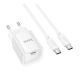Мережевий зарядний пристрій Hoco C146A з 1 Type-C, PD, QC 20W, кабелем Type-C to Type-C, Білий