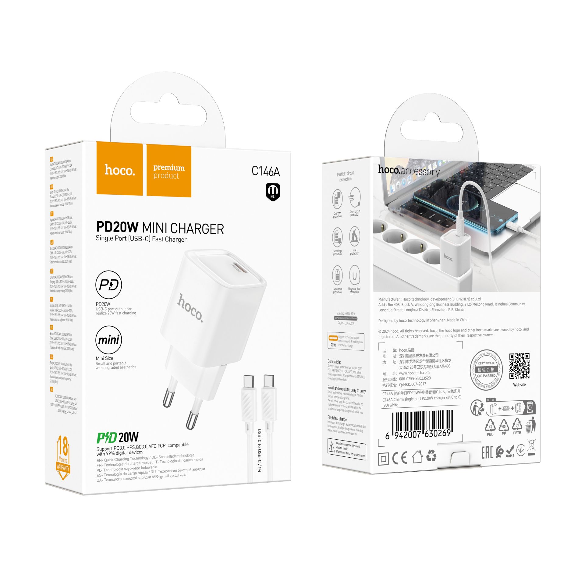 Мережевий зарядний пристрій Hoco C146A — це універсальний адаптер нового покоління, створений для швидкого, безпечного та ефективного заряджання сучасних портативних гаджетів. Він поєднує надійність, компактність та підтримку популярних протоколів швидкої зарядки, що робить його оптимальним вибором для повсякденного використання вдома, на роботі чи в поїздці.