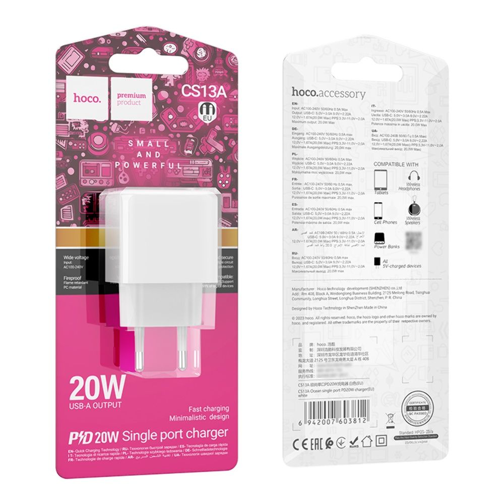Hoco CS13A Мережевий зарядний пристрій, Type-C, 20W, білий