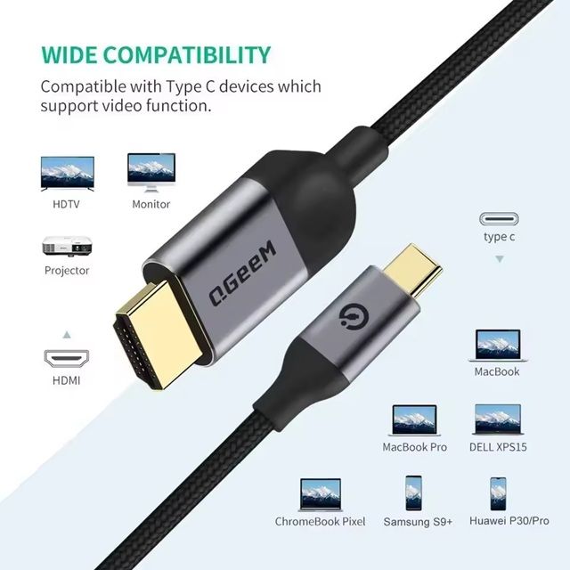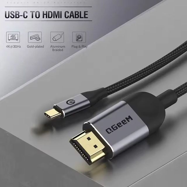 Кабель-адаптер QGeeM Type-C to HDMI, 4K 30Hz, сірий, 1.2 м