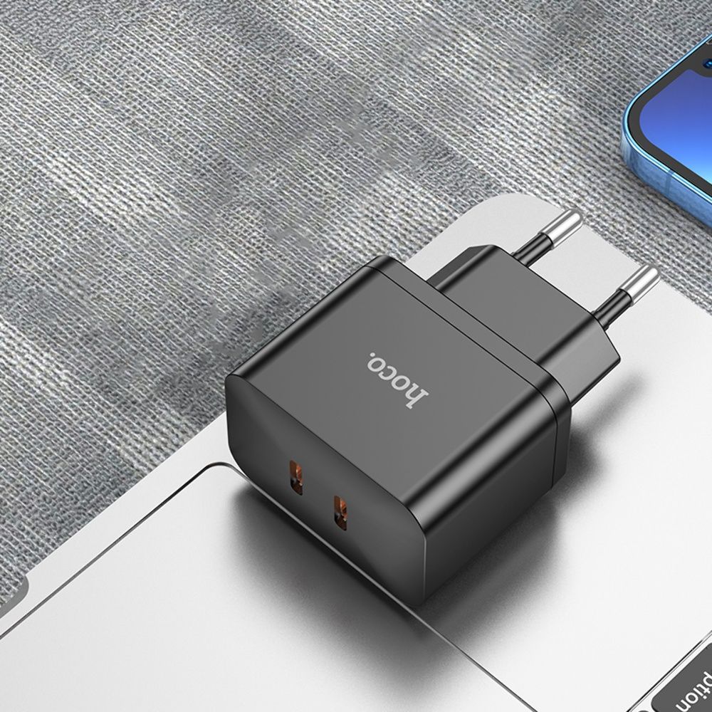 Зарядний пристрій Hoco N29 мережевий, 2 Type-C, PD 35W, чорний