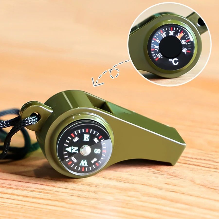 - Поєднує свисток, компас та термометр в одному компактному пристрої.