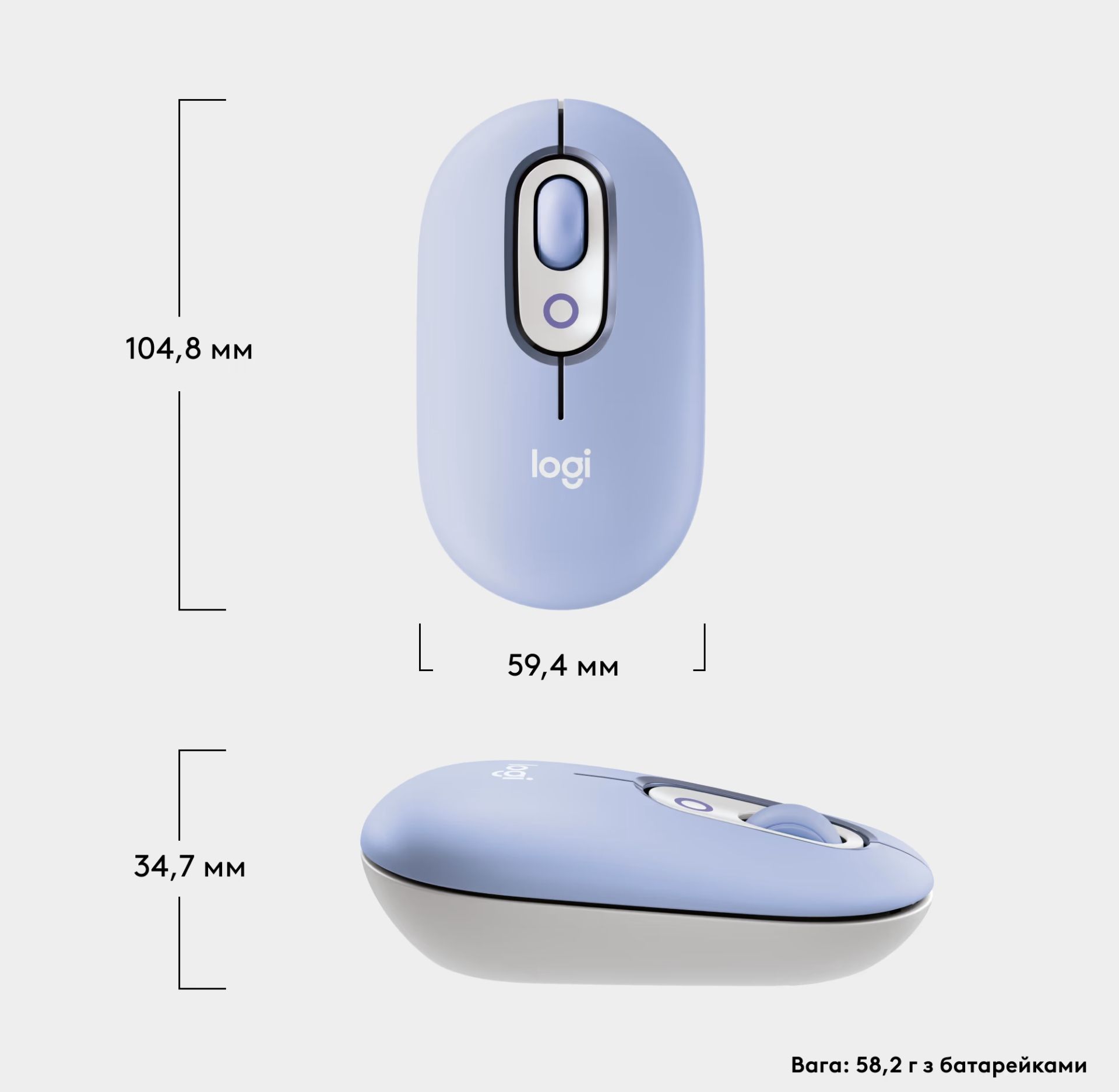 Бездротова миша Logitech POP Mouse, BT, Lilac (910-007414), 1000DPI, 1xAA