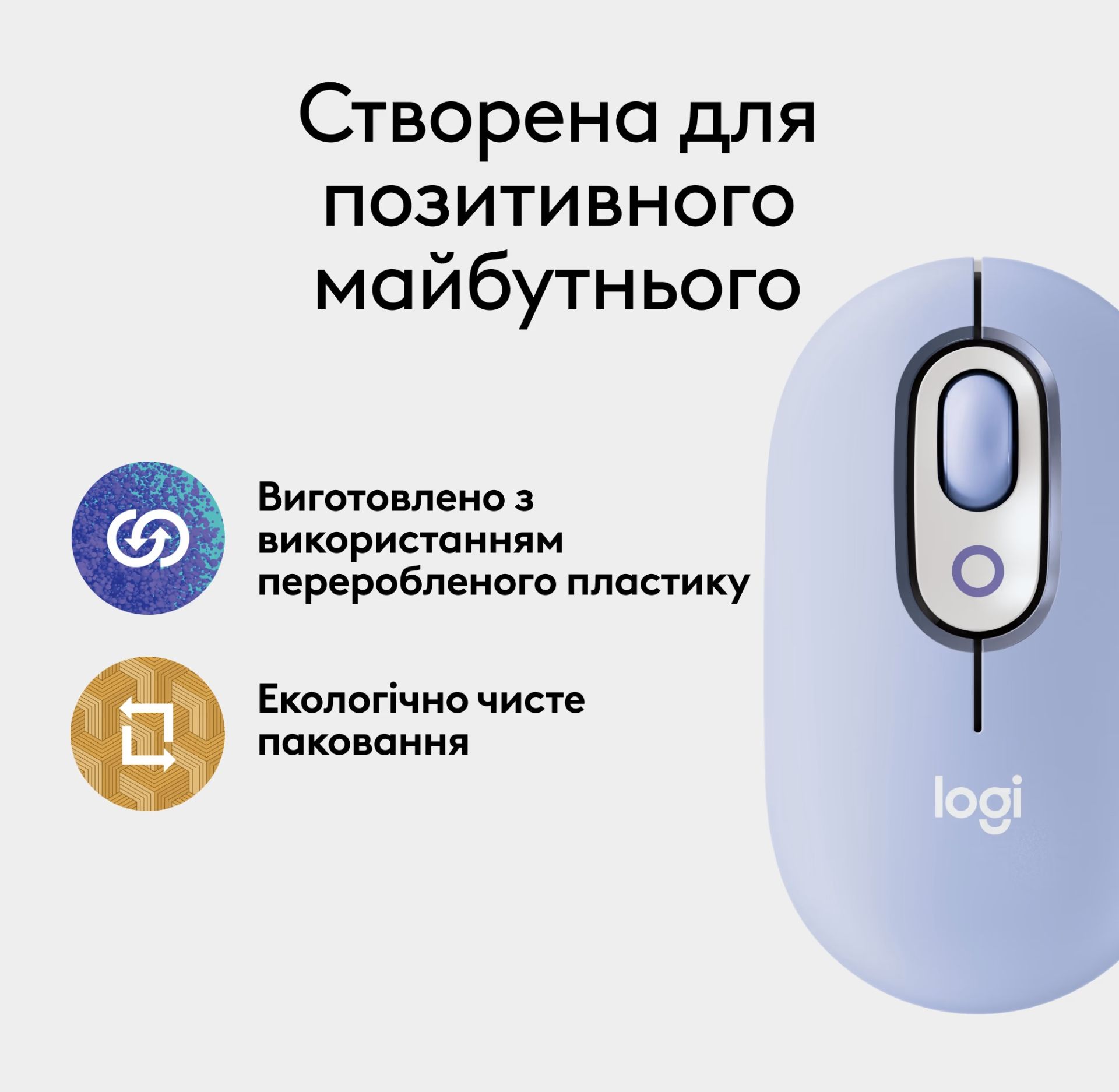 - Корпус миші виконаний із переробленого пластику, а упаковка виготовлена із FSC-сертифікованого паперу.