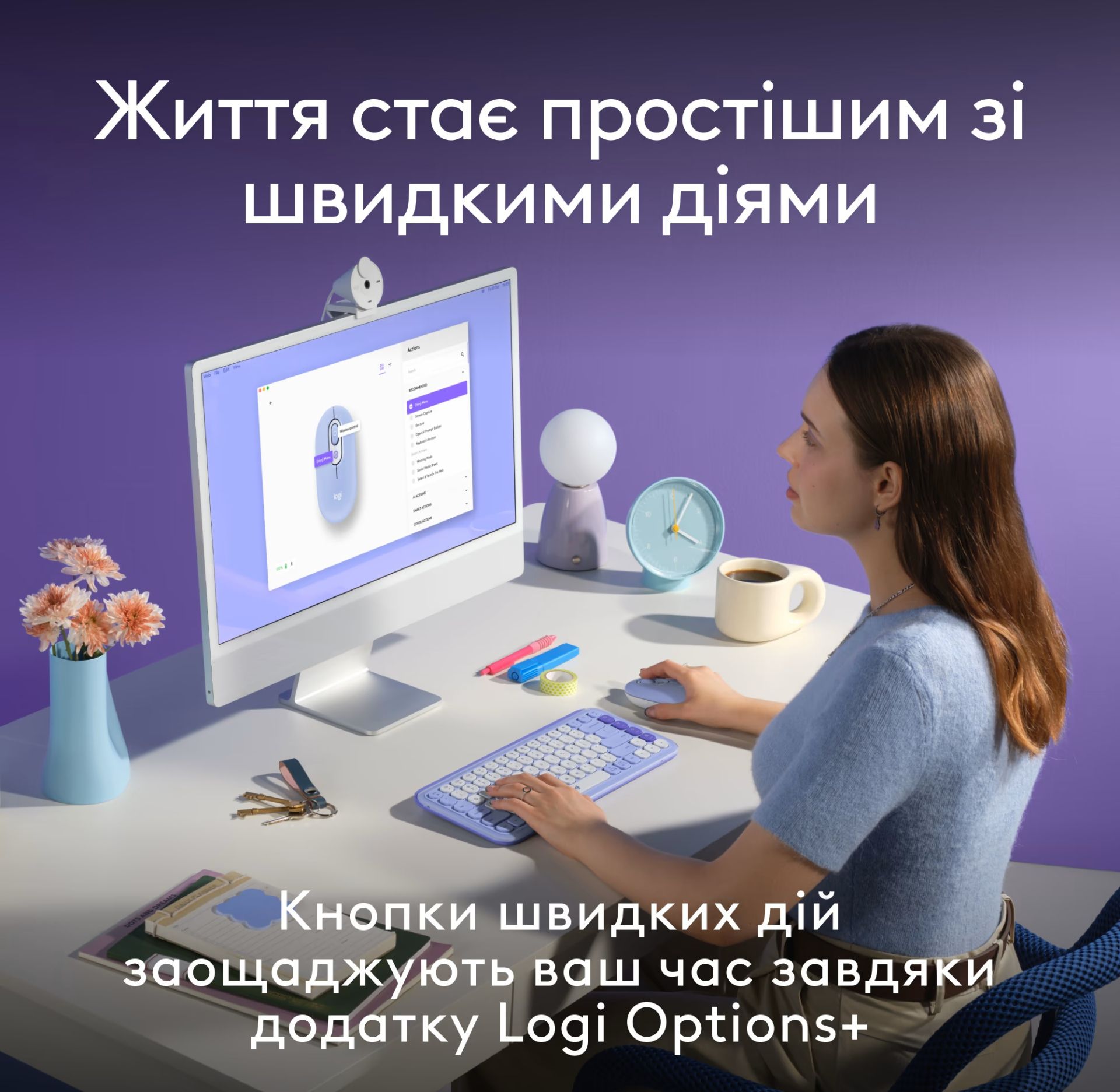 - Забезпечують налаштування швидких дій, перемикання між програмами, запуск мультимедіа або інструментів ШІ через програму Logi Options+.