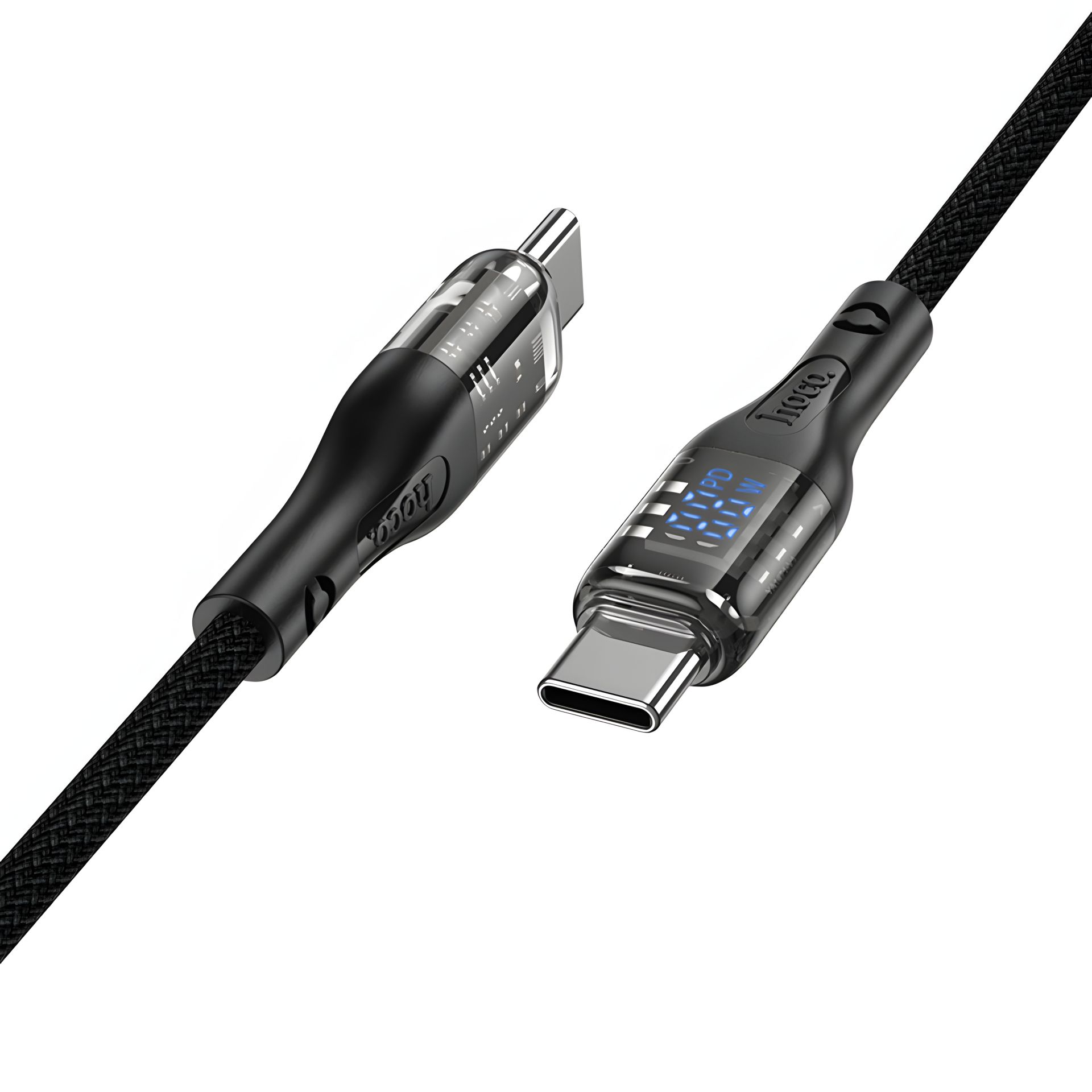 Чорний кабель Hoco U115 з дисплеєм, Type-C to Type-C, PD, 100W, 1.2m