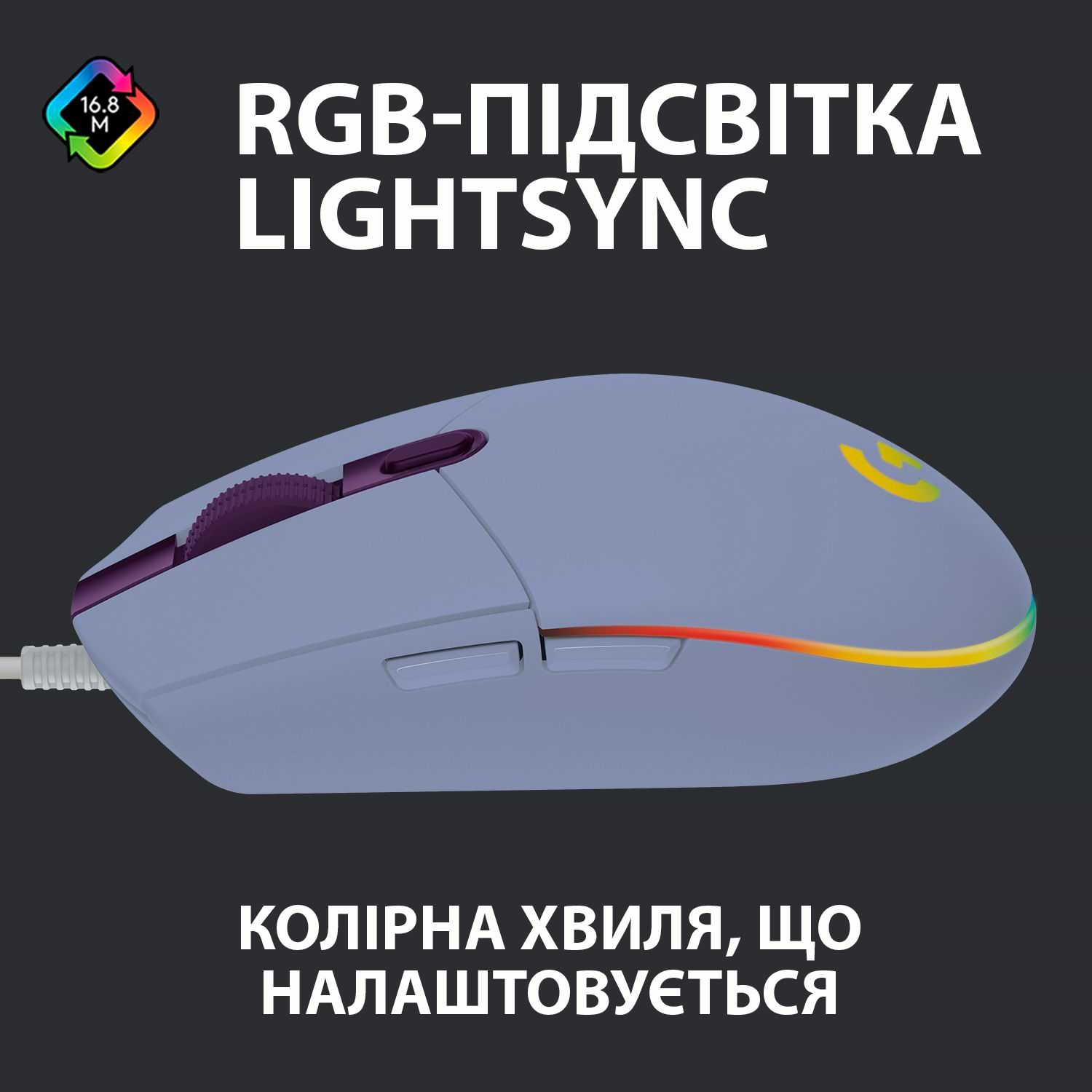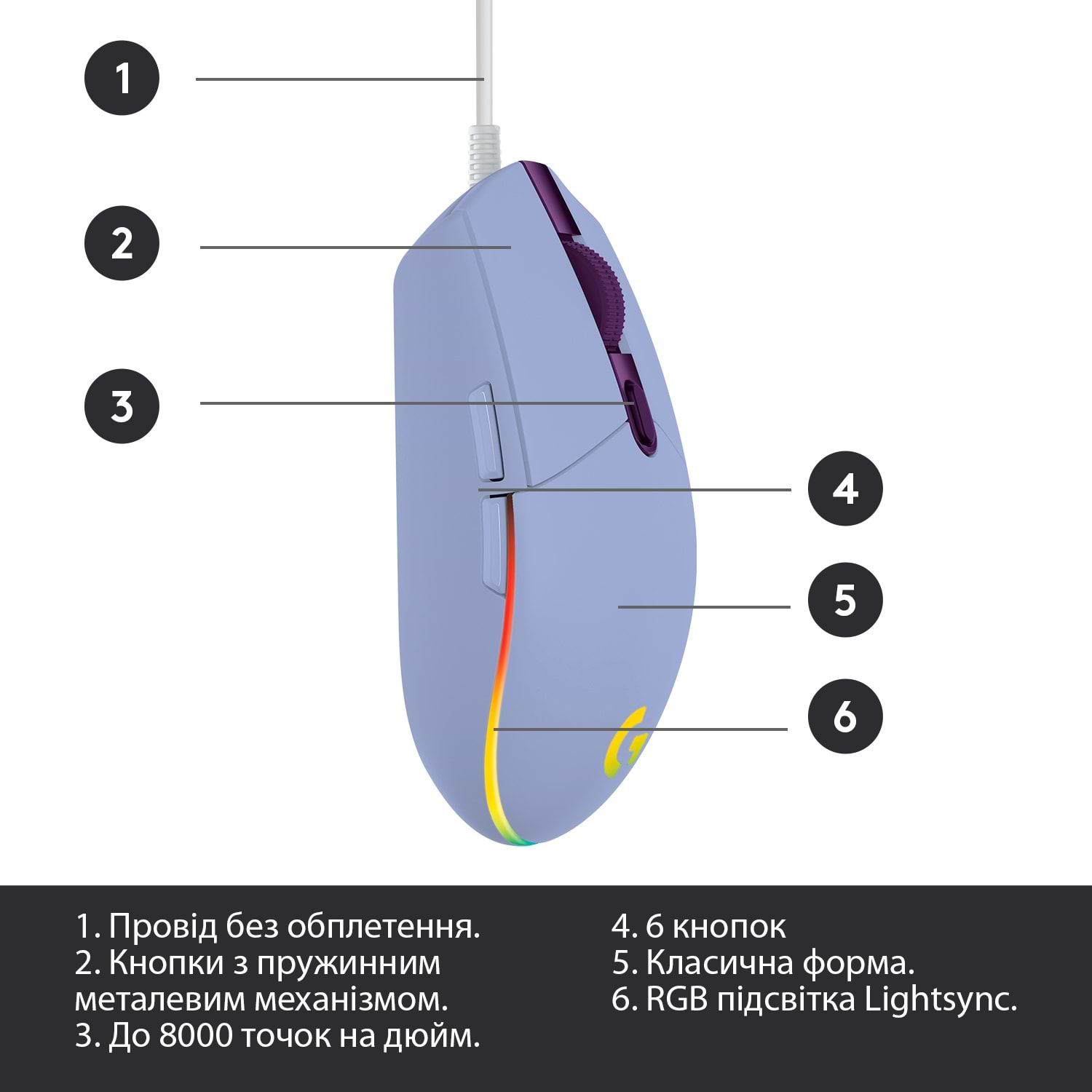 Бездротова миша Logitech G102 Lightsync USB, 200-8000DPI, 2.1m, Lilac (910-005854, 910-005857)