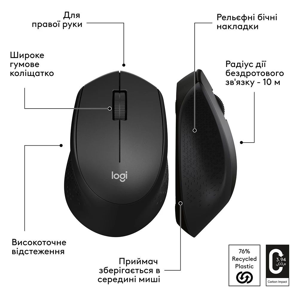 - Logitech M280 - це відмінний вибір для офісу, дому та поїздок. Вона займає мінімум місця та підходить як для настільних комп'ютерів, так і для ноутбуків.