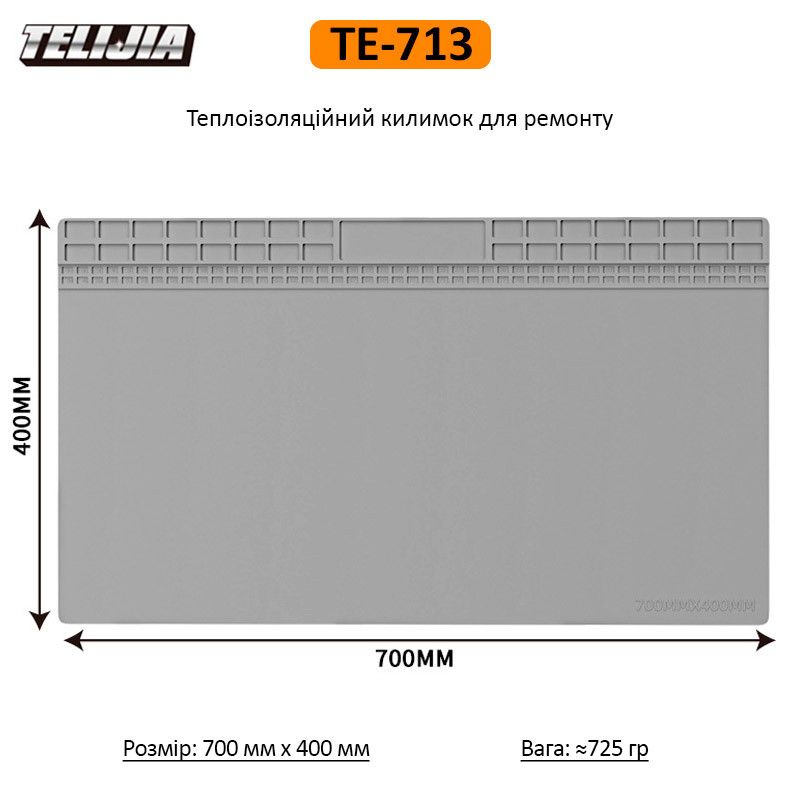 Теплоізоляційний силіконовий килимок TELIJIA TE-713 — це професійний аксесуар, створений для безпечного та зручного ремонту техніки та електроніки. Він забезпечує надійний захист робочої поверхні, зручну організацію інструментів та компонентів, а також стійкість до високих температур. Цей килимок стане незамінним помічником як у професійній майстерні, так і в домашніх умовах.