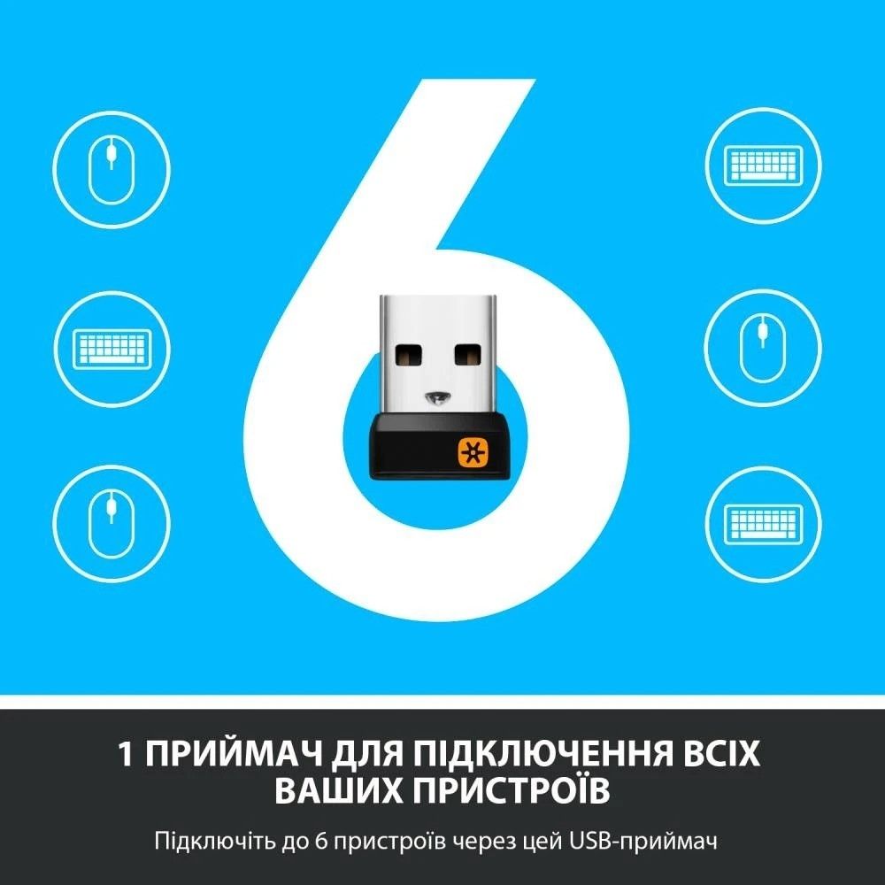 Тип підключення: бездротовий (2,4 ГГц), USB-наноприймач Logitech Unifying.