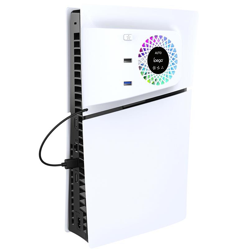 Ipega PG-P5S019 — це сучасна система повітряного охолодження, спеціально розроблена для PlayStation 5 Slim. Вона поєднує ефективну вентиляцію, динамічне RGB-підсвічування і додаткові USB порти, забезпечуючи не тільки надійний захист консолі від перегріву, але і покращуючи зовнішній вигляд ігрової зони.