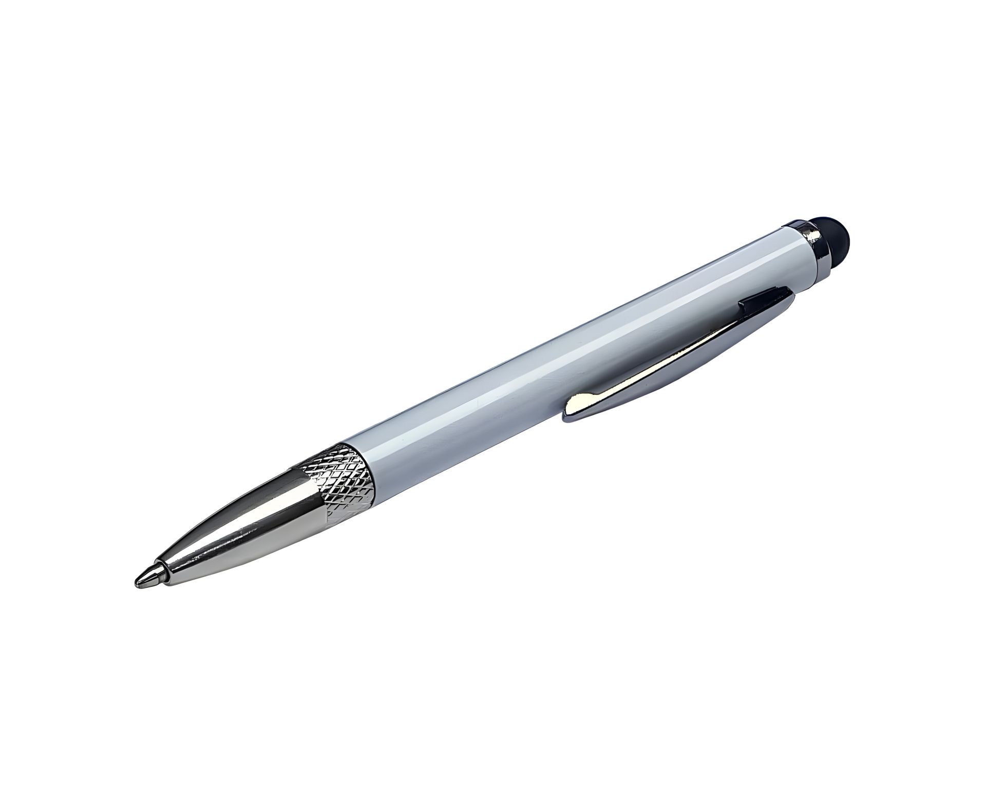Металевий ємнісний стілус з висувною кульковою ручкою, білий