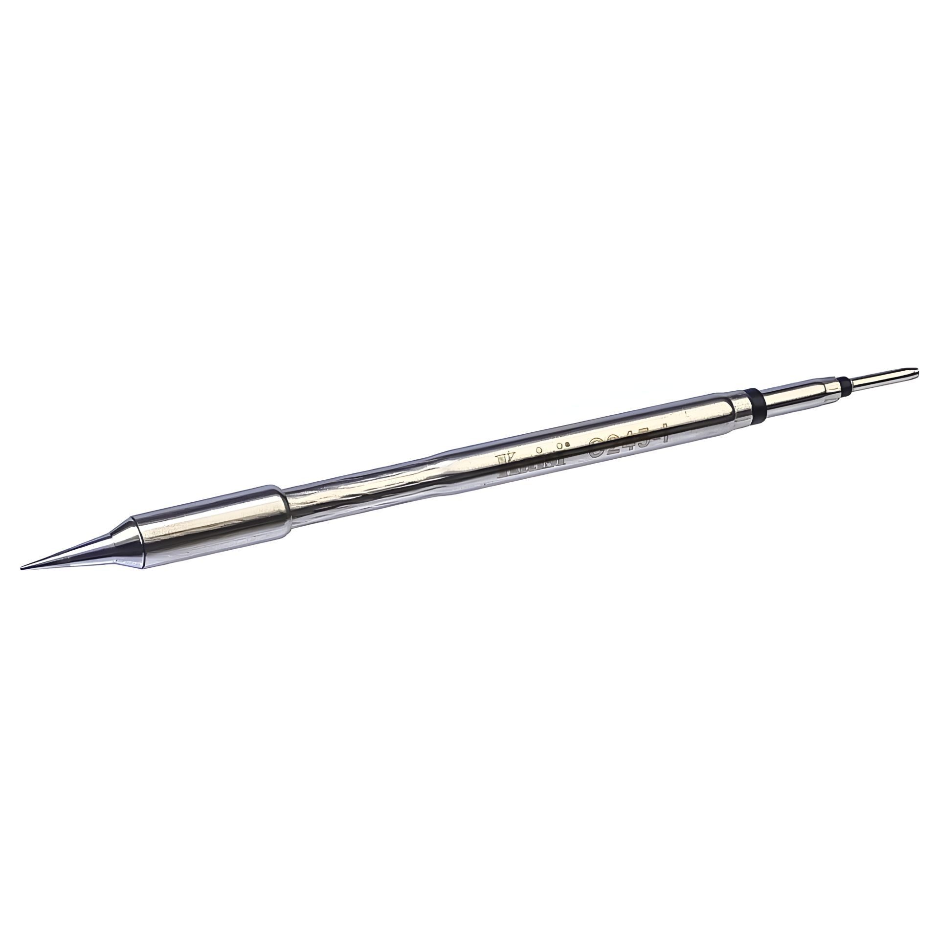 - Рівний конус малого діаметра дозволяє працювати з дрібними майданчиками, виводами мікросхем, роз'ємами та SMD-елементами, забезпечуючи акуратне нанесення припою та контроль температури на мінімальній контактній зоні.