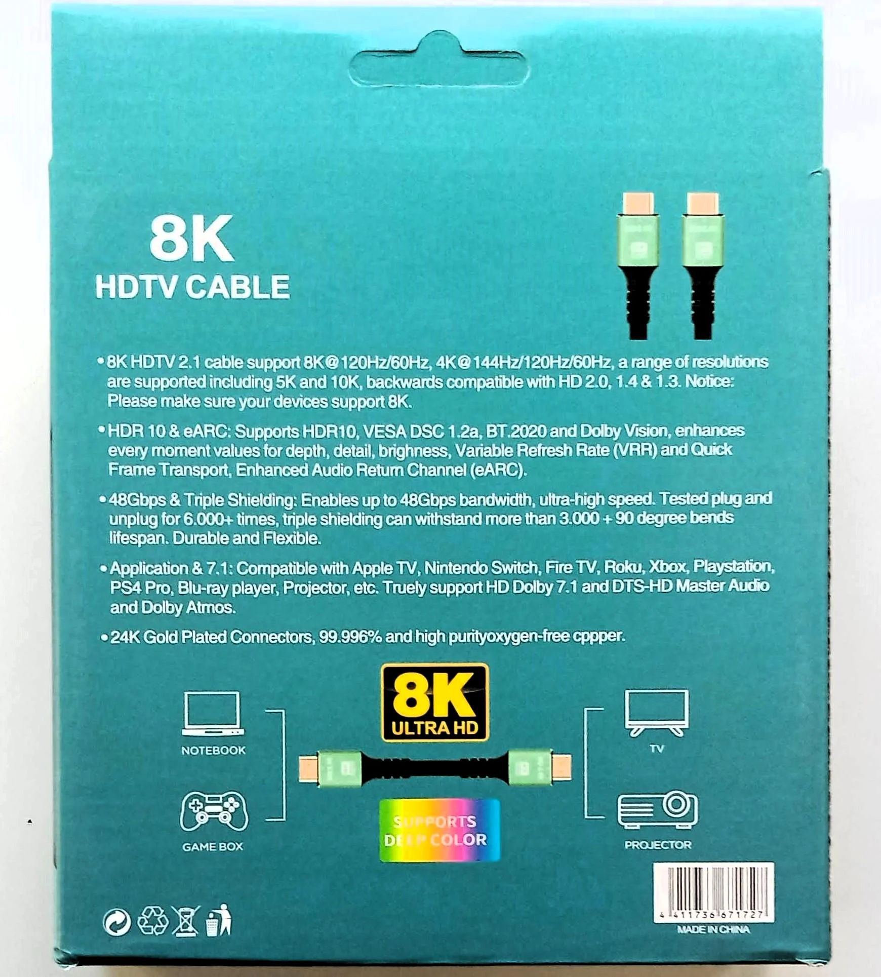 Цей кабель підтримує найсучасніші технології передачі контенту, включаючи 8K 120Hz, покращене кодування кольорів Deep Color, VRR, а також удосконалені аудіо формати через eARC.