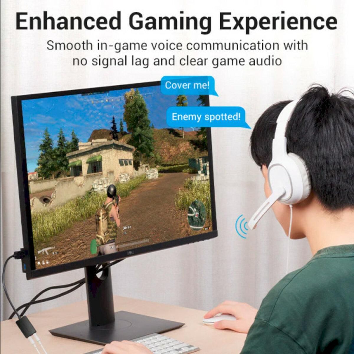 Це компактне рішення для підключення гарнітури, навушників та мікрофона до комп'ютера чи ноутбука через USB. Усуває проблеми з несправним аудіовиходом, відсутністю окремих роз'ємів під мікрофон і навушники та покращує якість звучання в іграх, фільмах та спілкуванні онлайн.