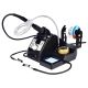 - Дві гнучкі «руки» із затискачами звільняють ваші руки, фіксуючи плату або дроти, а тримач котушки припою забезпечує плавну подачу припою під час роботи.