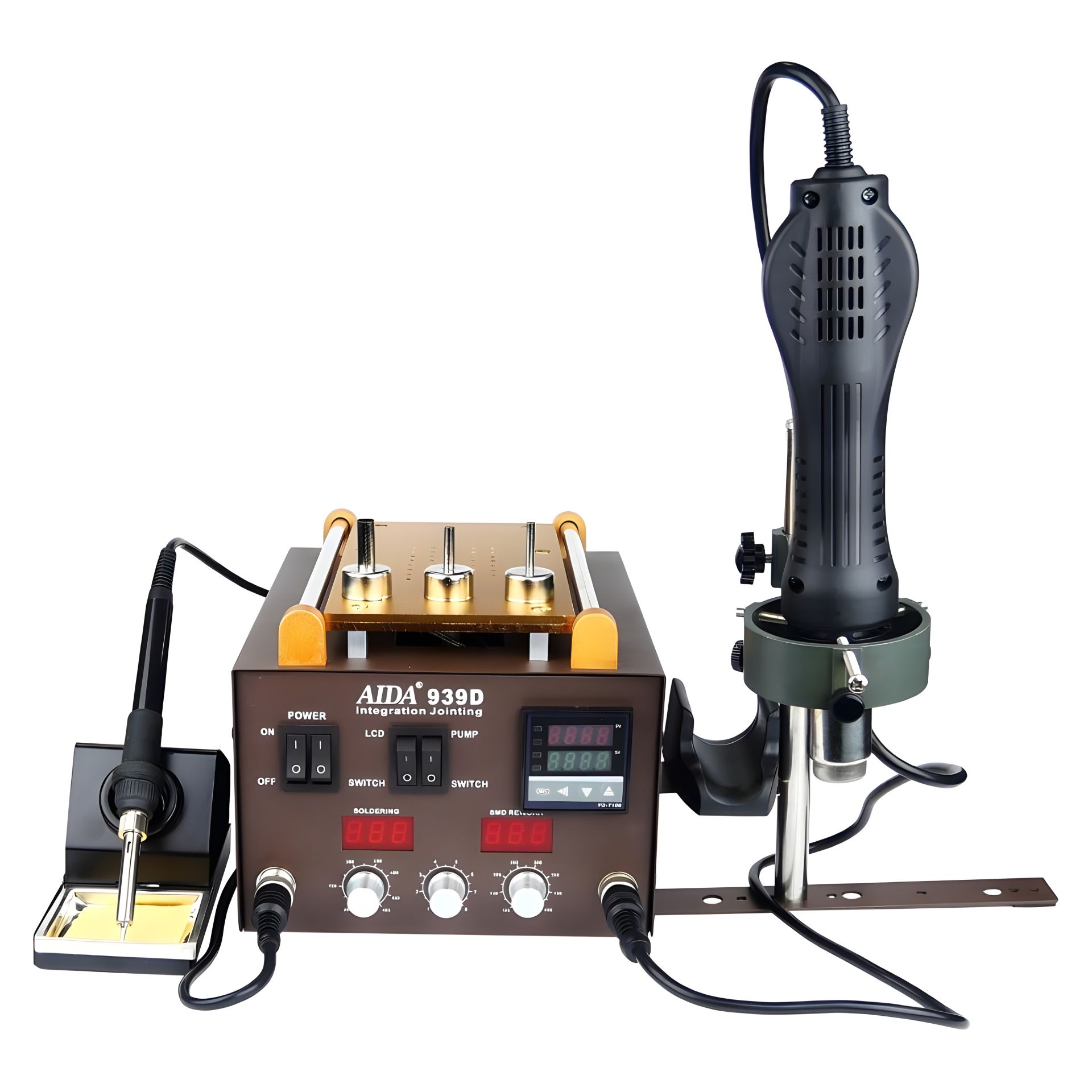 Паяльна станція Aida 939D з вбудованим вакуумним сепаратором 9" (20 x 11 см), фен, паяльник, третя рука