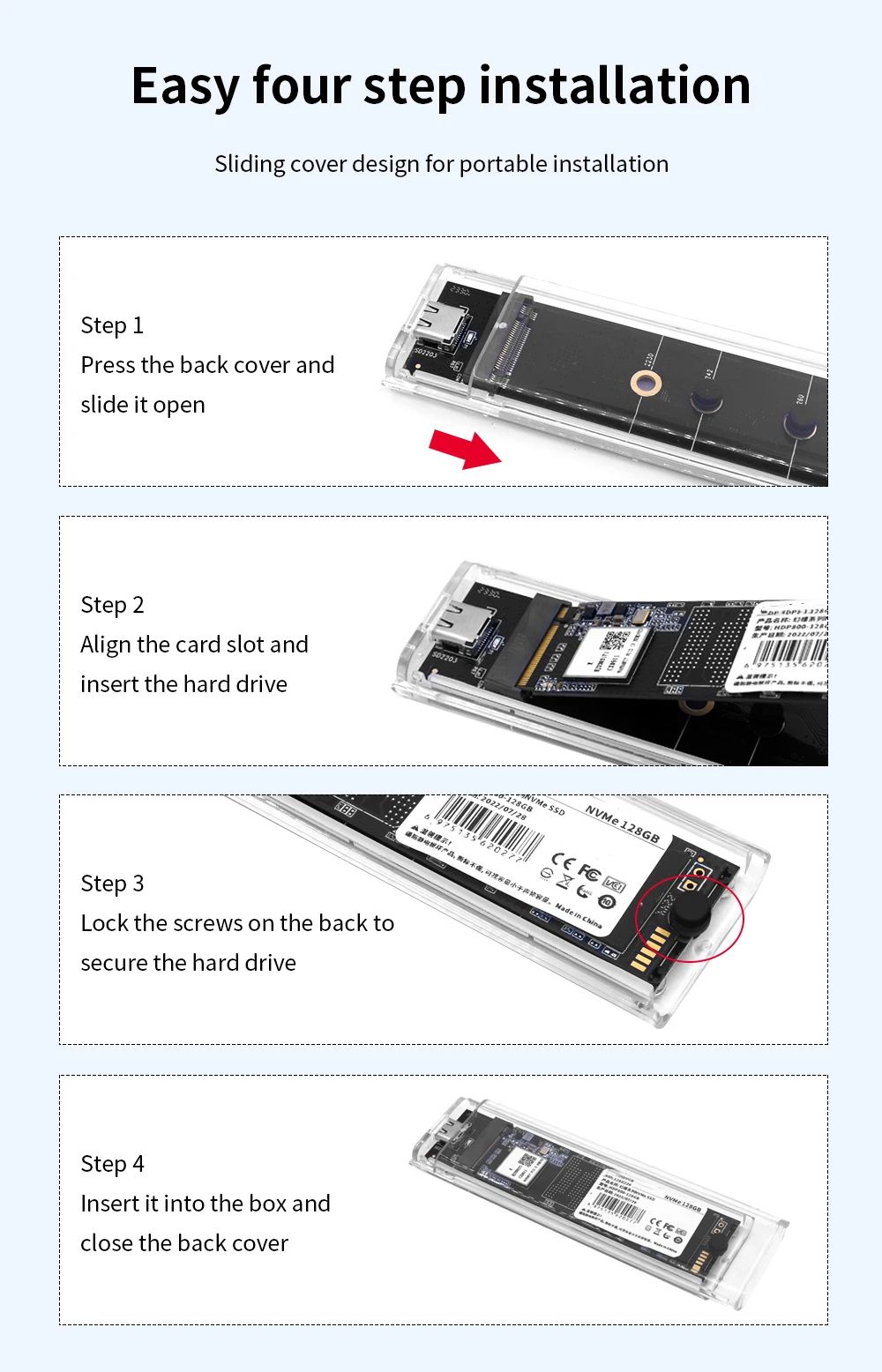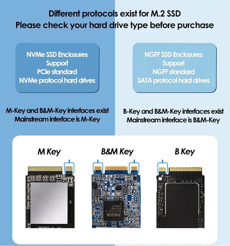 - Корпус NVMe не підтримує накопичувачі M.2 SATA (NGFF).