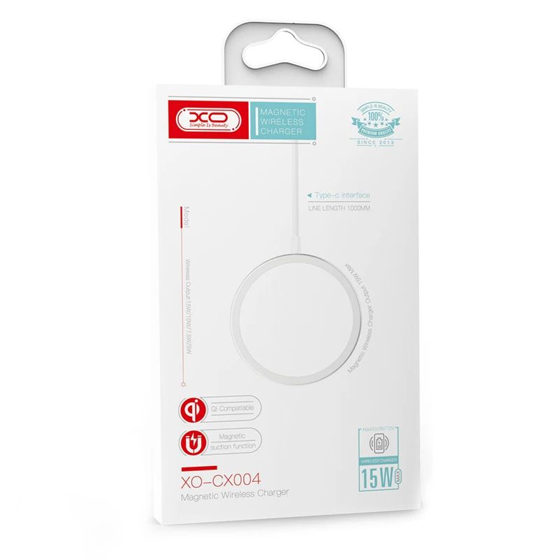 XO CX004 — це сучасний бездротовий магнітний зарядний пристрій, призначений для швидкого та безпечного заряджання смартфонів без підключення кабелю безпосередньо до роз'єму пристрою. Він працює за міжнародним стандартом Qi та оснащений магнітною системою позиціонування, що забезпечує точне поєднання котушок та стабільну передачу енергії.