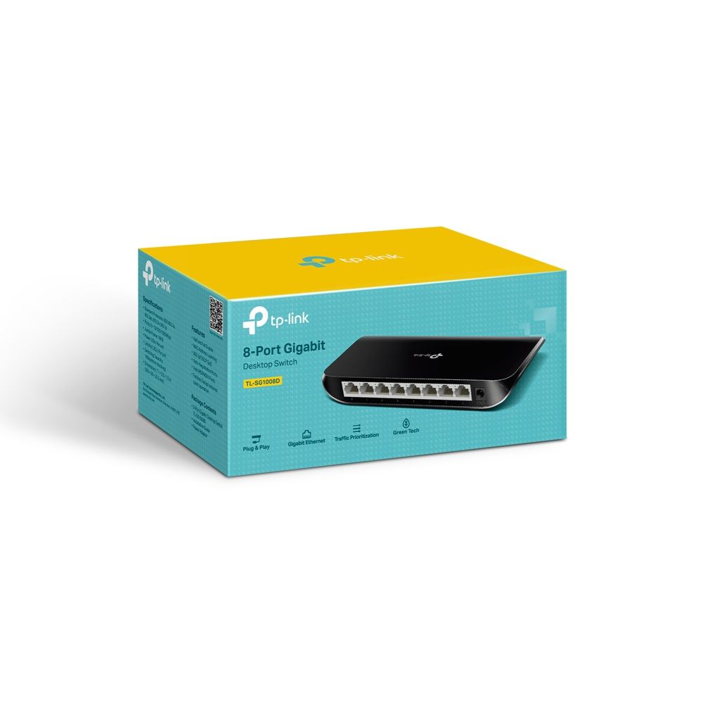 - 8-портовий гігабітний настільний комутатор TP-Link TL-SG1008D забезпечує простий перехід на Gigabit Ethernet. Збільште швидкість мережевого сервера та магістральних з'єднань або реалізуйте гігабітний доступ до настільних комп'ютерів. Крім того, TL-SG1008D має конструкцію з низьким енергоспоживанням. Завдяки інноваційній енергоефективній технології TL-SG1008D може економити енергію, що робить його екологічним рішенням для вашої домашньої або офісної мережі.