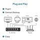 - Цей комутатор не потребує конфігурації чи участі технічного фахівця. Достатньо підключити живлення та мережеві пристрої — система автоматично визначить швидкість з'єднання та забезпечить оптимальну продуктивність.