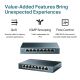 - Вісім портів RJ45 з автоузгодженням 10/100/1000 Мбіт/с забезпечують неблокуючу передачу даних і дозволяють без затримок працювати з великими файлами, потоковим відео, мережевими серверами та іншими ресурсомісткими завданнями.