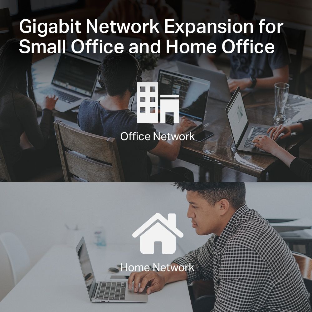 - TL-SG108 готовий до роботи відразу після підключення живлення та пристроїв. Відсутність складної конфігурації дозволяє швидко розгорнути мережу без технічних фахівців.