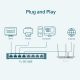 - Цей комутатор готовий до роботи одразу після підключення. Автоматичне узгодження на портах забезпечує оптимальну швидкість та сумісність із підключеними пристроями без участі технічних фахівців.
