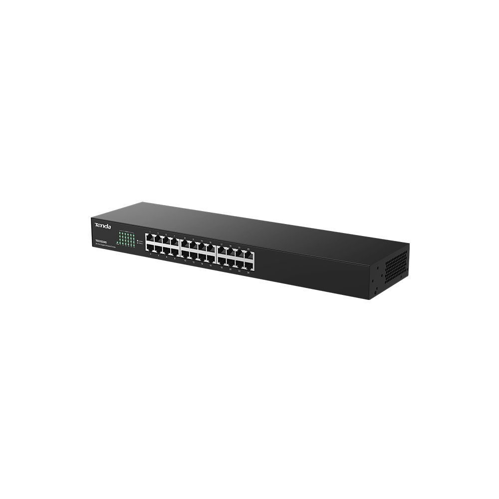 Tenda TEG1024G — це некерований комутатор на 24 порти Gigabit Ethernet, призначений для простого розширення мережі без необхідності складного налаштування. Він ідеально підходить для малих та середніх мереж, де потрібне надійне та швидке підключення пристроїв.