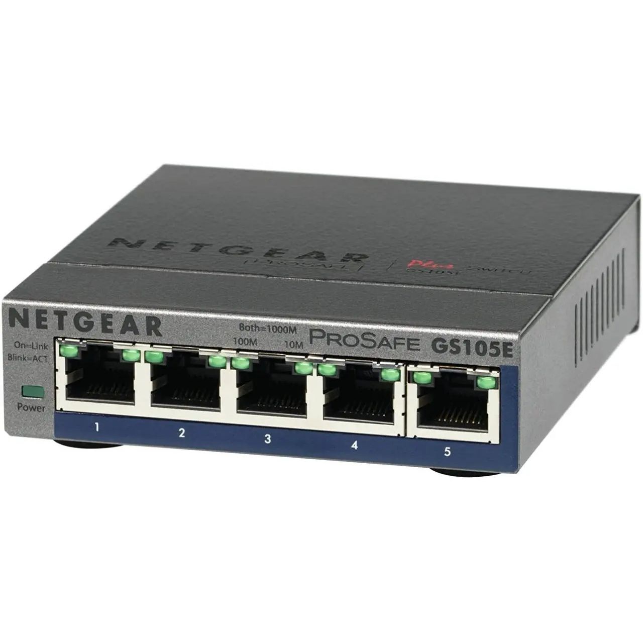 NETGEAR GS105E — це керований L2-комутатор, призначений для побудови невеликих, але функціональних локальних мереж в офісах, домашніх робочих просторах, магазинах та навчальних класах. Пристрій поєднує простоту установки некерованого комутатора з розширеними можливостями управління рівня L2, включаючи VLAN, QoS та моніторинг трафіку.