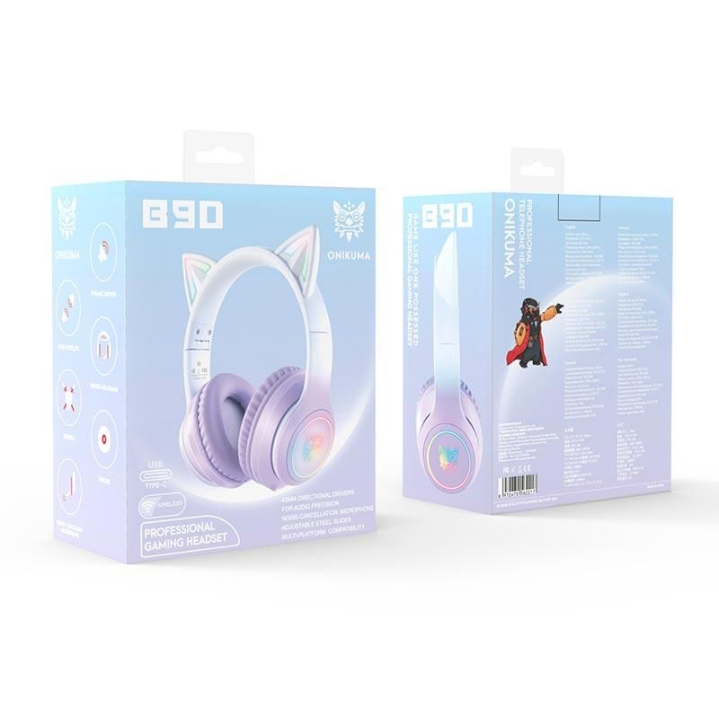 Накладні навушники ONIKUMA Bluetooth Gaming CAT with LED B90, 800mAh, BT5.0, AUX, 800mAh, 15h, purple