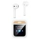 - Відображає рівень заряду навушників і чохла в реальному часі, а також поточний час.