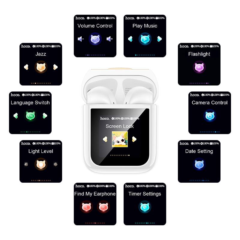 HOCO EW86 Cat - це сучасні навушники True Wireless, які вдало поєднують в собі функціональність, оригінальний дизайн і передові технології управління. Модель оснащена інтелектуальним сенсорним екраном, вбудованим у зарядний кейс, який дозволяє контролювати заряд, час і основні функції, не відкриваючи кришку. Яскравий дизайн із зображенням кота робить ці навушники помітним і модним аксесуаром.