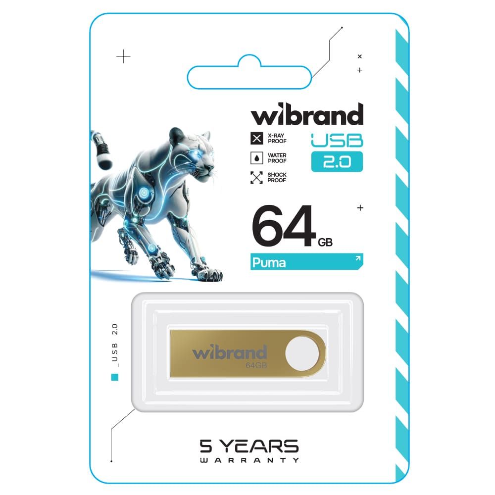 Флешка Wibrand USB 2.0 Puma 64Gb Gold