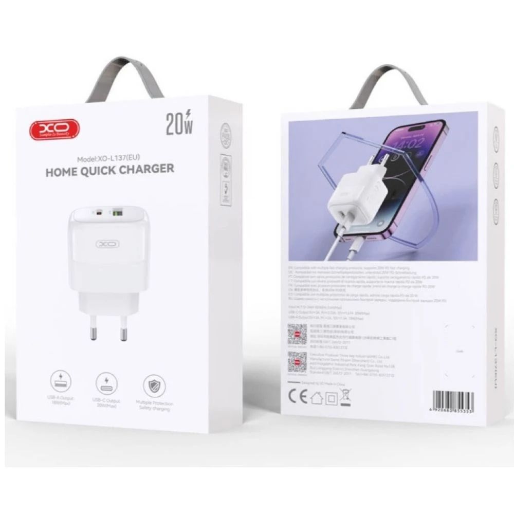 XO L137 — це універсальний і практичний адаптер живлення, призначений для швидкої та безпечної зарядки сучасних мобільних пристроїв. Модель оснащена двома вихідними роз'ємами - USB і Type-C, підтримує базові протоколи швидкої зарядки і може замінити відразу два стандартних адаптера. Високоякісні електронні компоненти та міцні матеріали корпусу гарантують стабільну роботу, тривалий термін служби та захист підключених гаджетів.