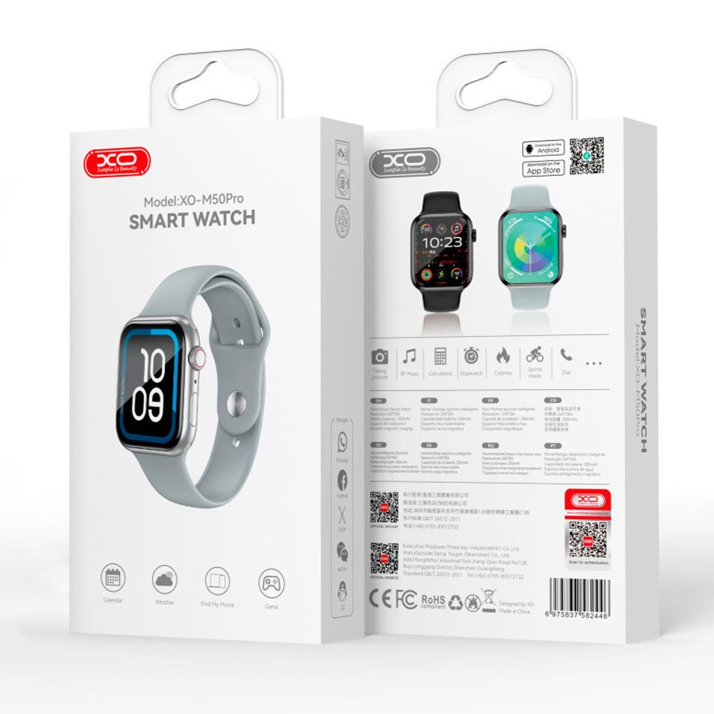 Розумний годинник XO M50 Pro - це стильний і функціональний аксесуар для повсякденного використання, який поєднує в собі сучасний дизайн, зручність і розширені можливості для моніторингу активності і здоров'я. Ця модель підходить як чоловікам, так і жінкам і гармонійно доповнює будь-який образ - від повсякденного до спортивного.