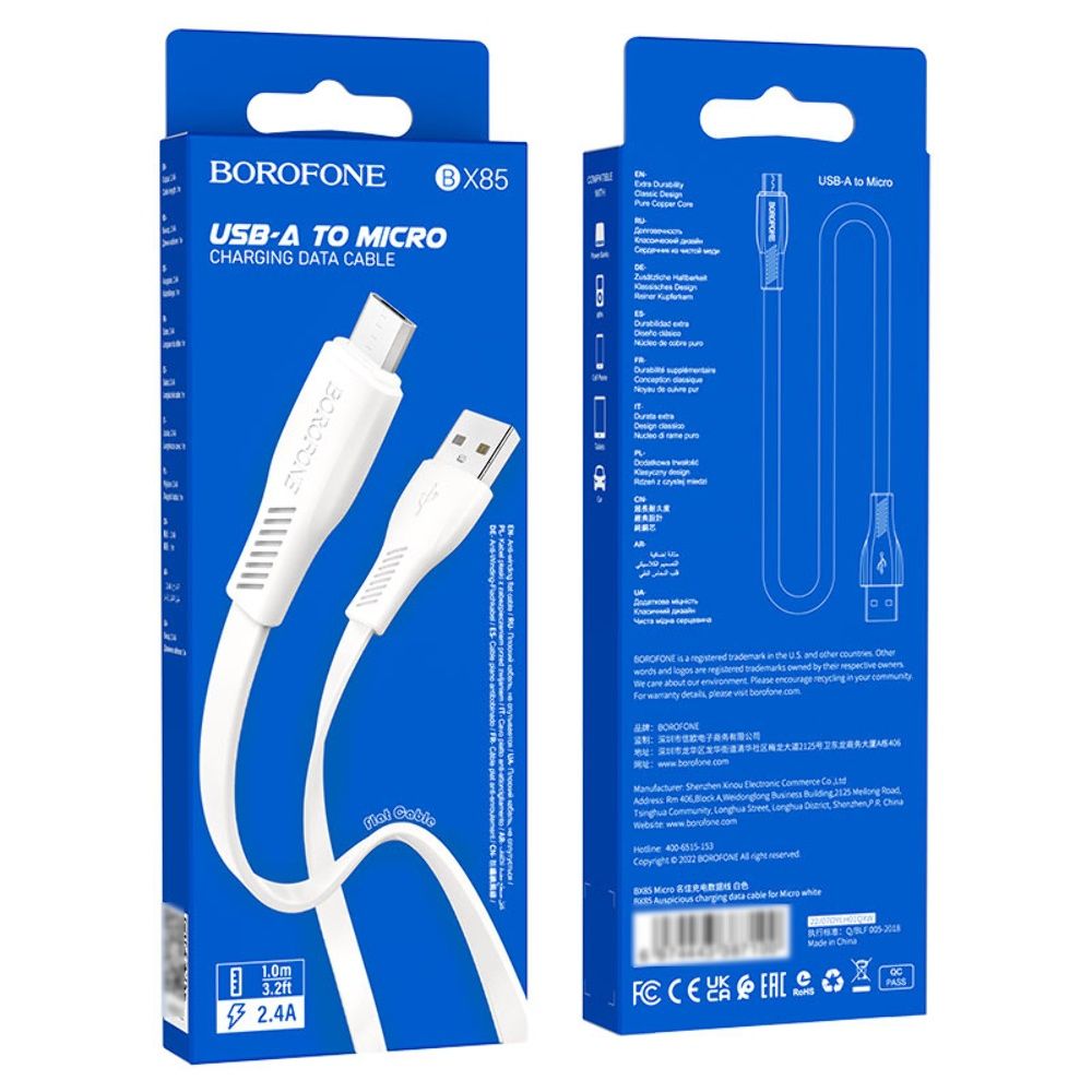 Кабель Borofone BX85 USB to MicroUSB – це надійний та зручний аксесуар для заряджання та передачі даних ваших пристроїв з роз'ємом MicroUSB. Цей кабель поєднує довговічність, якість матеріалів та сучасний дизайн, забезпечуючи стабільну роботу та комфортне використання.