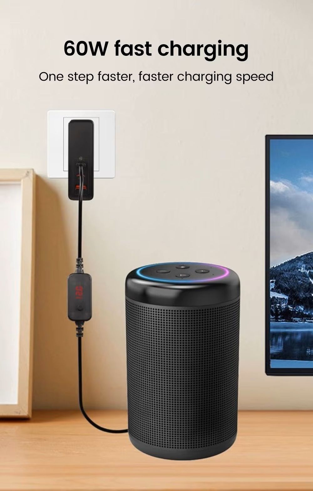 - Технологія PD автоматично узгодить потужність та напругу між джерелом живлення та кабелем, забезпечуючи ефективну передачу енергії та прискорену зарядку. Наявність PD дозволяє досягати повної вихідної потужності до 60 Вт, якщо зарядний пристрій підтримує відповідні профілі.