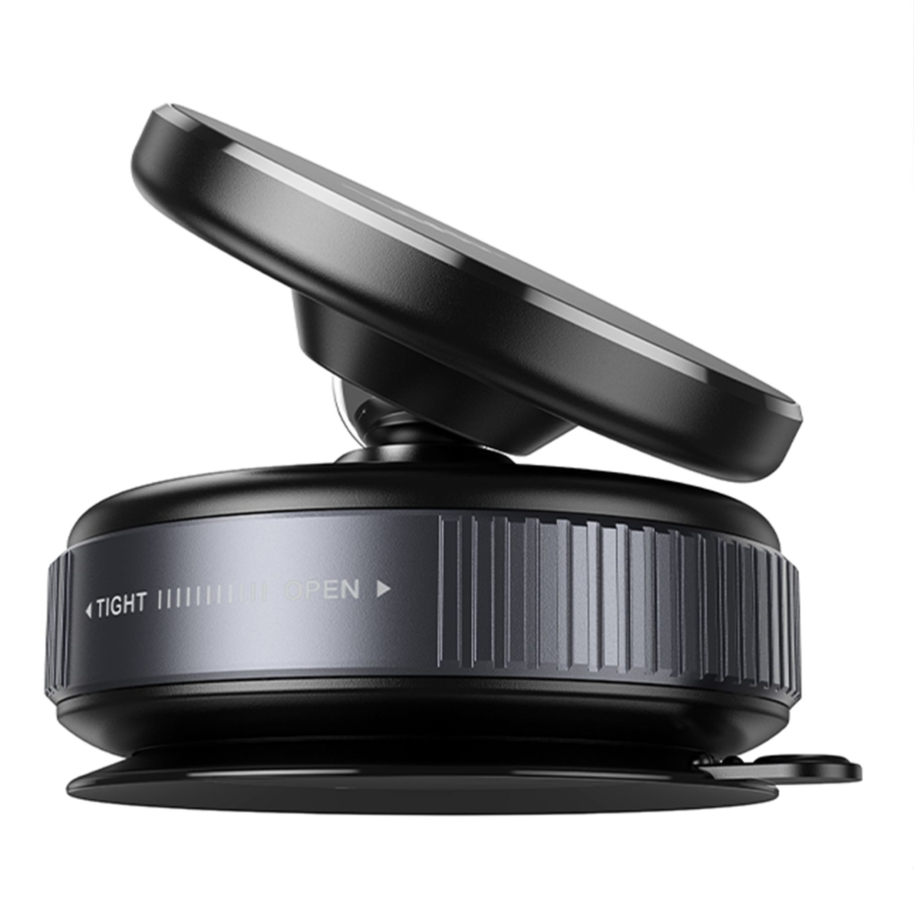 - Основа з вакуумним механізмом створює тиск 18-65 kPa, завдяки чому тримач міцно фіксується на склі, плитці, пластиці та інших гладких поверхнях.