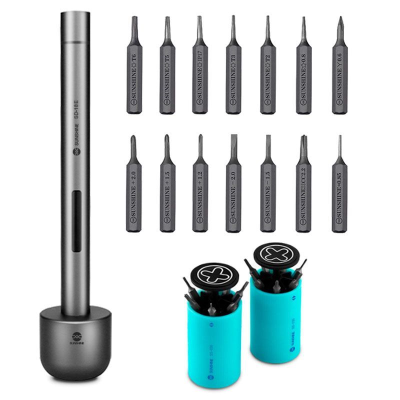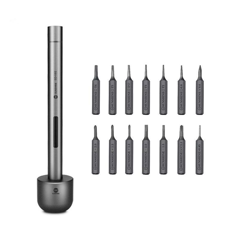 Акумуляторна викрутка SUNSHINE SD-18E / прецизійна / підсвічування / набір біт 14 шт. / iPhone 17