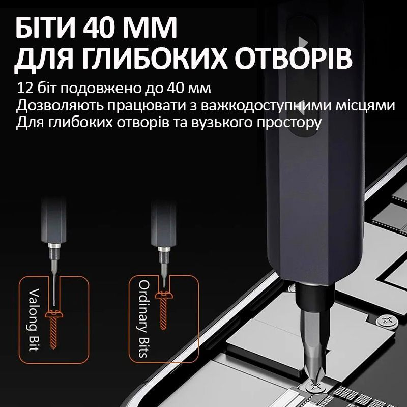 - 12 подовжених біт із довжиною 40 мм
